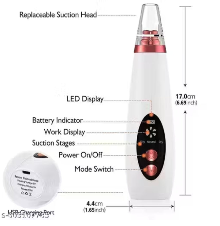 This Multi-Functional Electric Blackhead Remover uses powerful suction technology to deeply cleanse pores, remove blackheads, and rejuvenate your skin β leaving it fresh, smooth, and glowing.